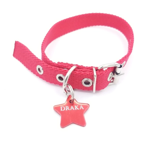 Tamaño del collar 2cm de ancho x 45cm de largo. Ajusta primer agujero a los 30cm.